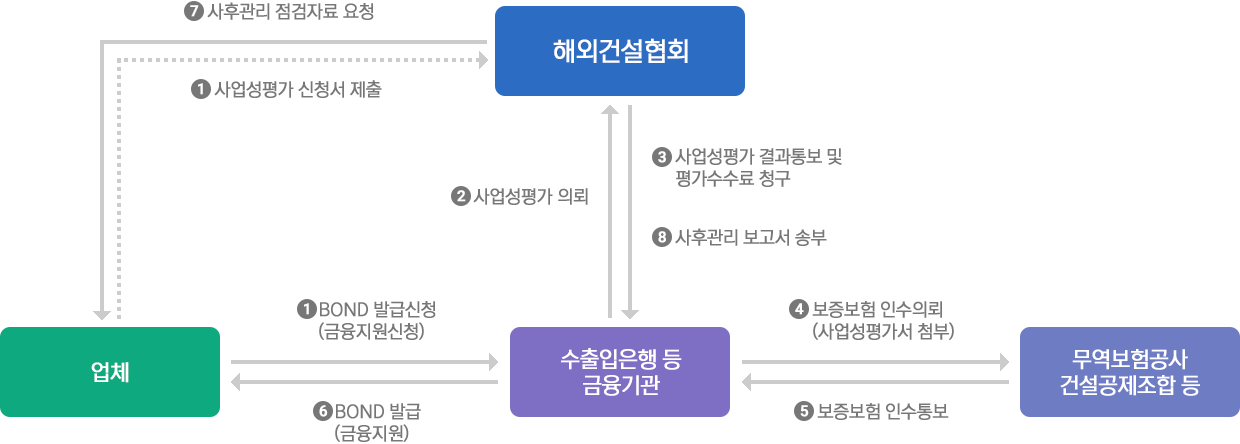 해외건설 프로젝트의 특수성을 감안, 분야별 전문가에 의한 사업성평가를 통해 협회에서 은행 심사업평무 지원